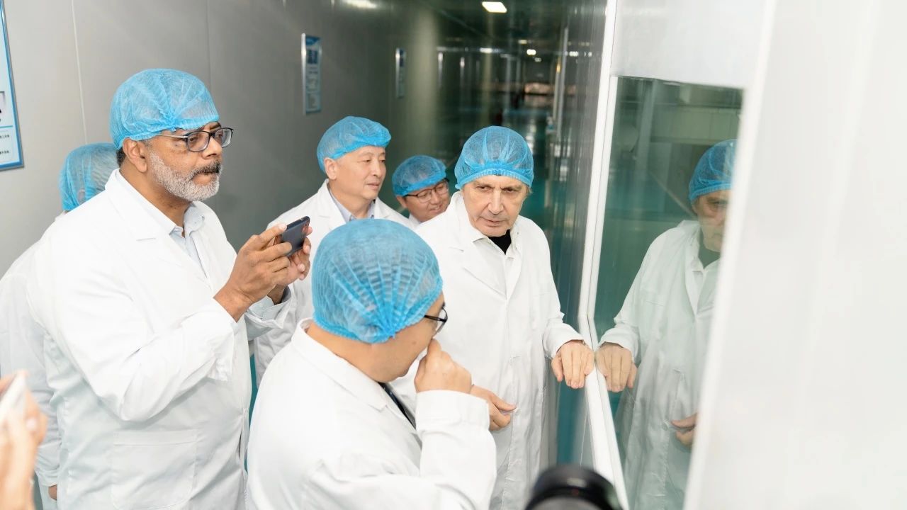 安德烈·蓋姆教授首先參觀了海氏海諾集團生產車間和云倉,與現場員工親切互動,詳細了解了海氏海諾各類產品的生產流程和制作工藝。